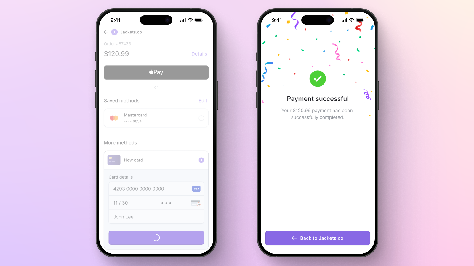 Mobile checkout happens in short, distracted bursts, so the interface must constantly confirm that it's responding. Validate fields in real time, acknowledge taps immediately, show clear loading and authentication states, and confirm the payment is successful. This prevents confusion that leads to double-taps, second-guessing, and drop-offs.